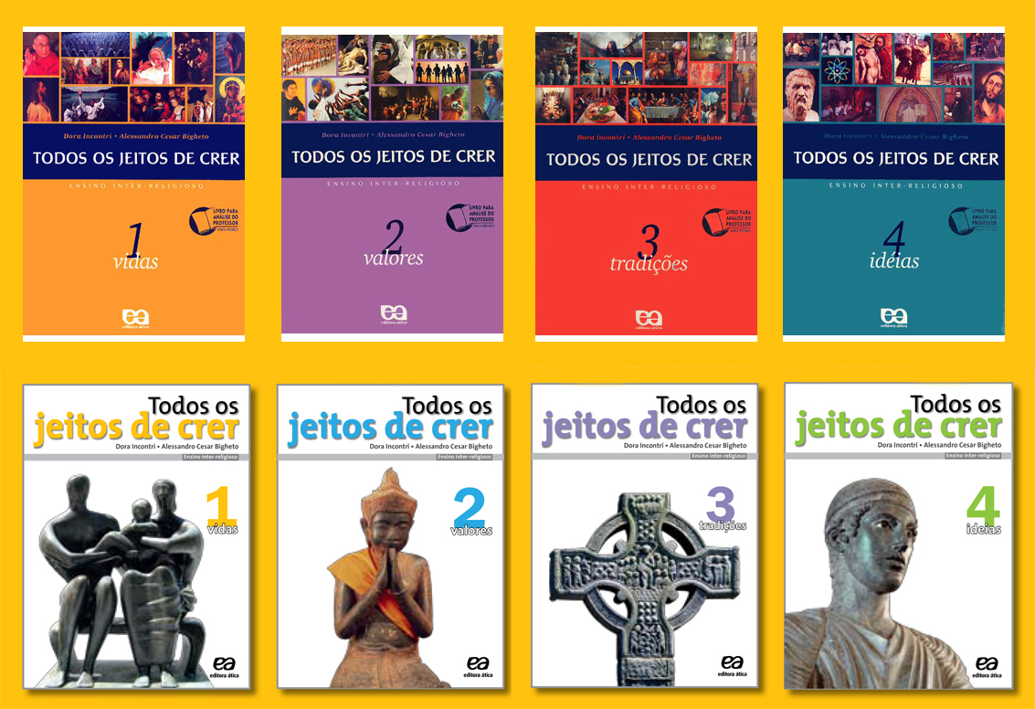 Essa coleção, pela Editora Ática, destinada aos alunos do 6º ao 9º ano foi escrita por mim e pelo meu grande parceiro e filho e irmão espiritual Ale (Alessandro Cesar Bigheto). Foi indicada ao prêmio Jabuti e tem sido adotada por várias escolas Brasil afora. O objetivo da série é reinserir a espiritualidade na Educação através do ensino inter-religioso, num proposta interdisciplinar e plural. Foi um trabalho feito com muito cuidado, muita pesquisa, passou por vários leitores críticos… E agora, na reedição, as revisões foram também meticulosas. Acho que é uma boa contribuição para as crianças e adolescentes!