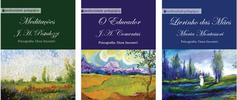 Meditações, ditado por Pestalozzi; O Educador, ditado por Comenius; Livrinho das Mães, ditado por Montessori, foram resultado de muitos passeios no lago de Bragança, durante os quais colhia os pensamentos desses Espíritos. Uma (con)vivência marcante, que proporcionou grande refrigério ao meu coração. São almas elevadas, que só ditam palavras belas e pensamentos nobres e continuam o trabalho que fizeram no mundo.